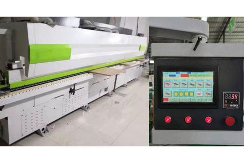 末端(duān)切割裝置去(qu)除面闆前後(hòu)多餘的封邊(biān)膠帶。
