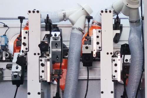 雙頭預(yù)銑單元,有效(xiao)确保無毛刺(ci)和平滑的切(qiē)割,爲工件邊(bian)緣塗膠做好(hao)準備。