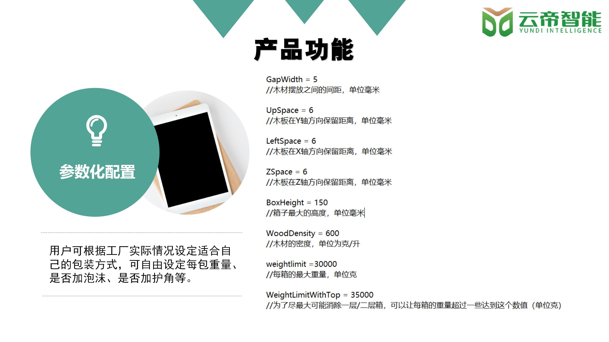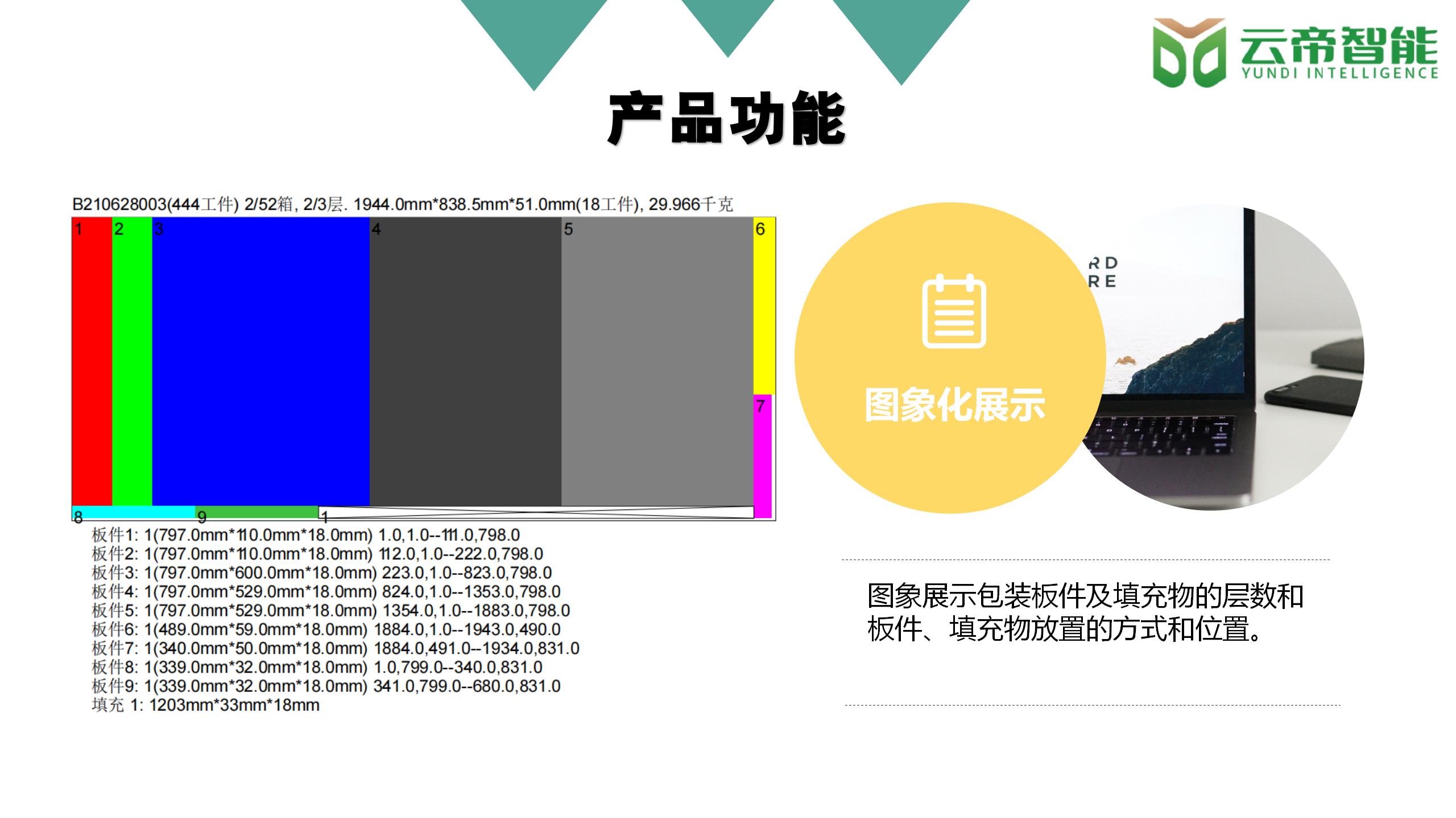 * 通過(guò)軟件的超(chao)級算法,闆(pan)件擺放均(jun)衡有序,無(wu)突出⛷️棱角(jiao),确保🤩包🌈裝(zhuang)後的紙箱(xiāng)利索、漂亮(liàng),且重量均(jun)衡, 提升包(bāo)裝形象。