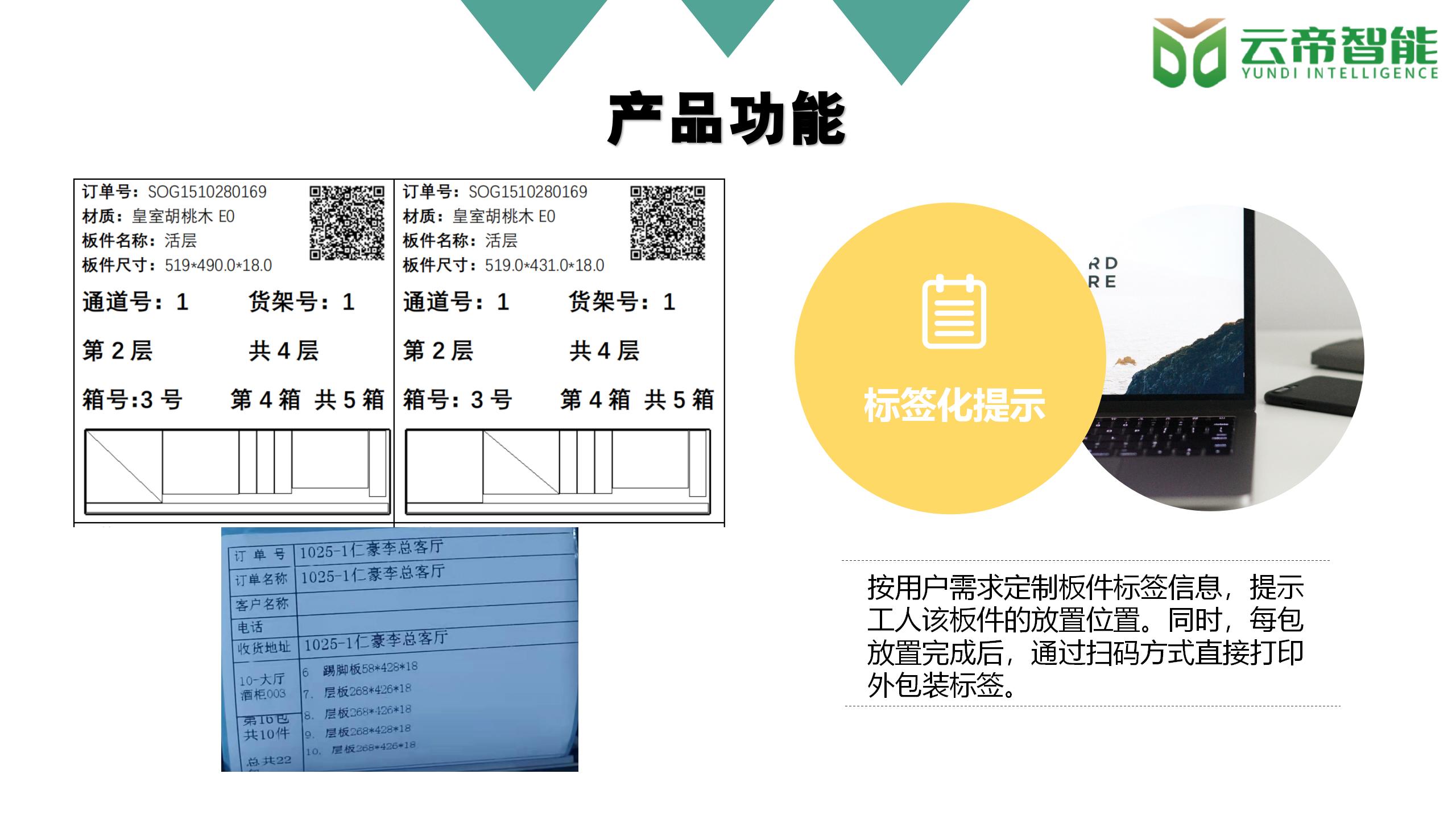 * 真正意義(yi)上的“分揀(jian)到包”!同批(pī)次生産的(de)訂單在前(qián)段🐉無需整(zhěng)理區分訂(ding)單号、客戶(hù)和櫃子,用(yòng)戶在打包(bao)⭐前應用冠(guàn)雲預㊙️分包(bāo)軟件即可(kě)将訂單号(hao)、客戶、櫃子(zǐ)💋分開,同時(shi),軟件将每(mei)個闆件要(yào)🏃🏻打在哪一(yi)包、放置在(zài)該包裝的(de)哪一層的(de)✂️哪一個位(wèi)置、是否需(xū)👈要放置填(tián)充物以及(jí)填🛀充物的(de)放置位置(zhì)和方向❤️均(jun1)通過圖象(xiang)顯示,工人(ren)按指示打(dǎ)包即可。